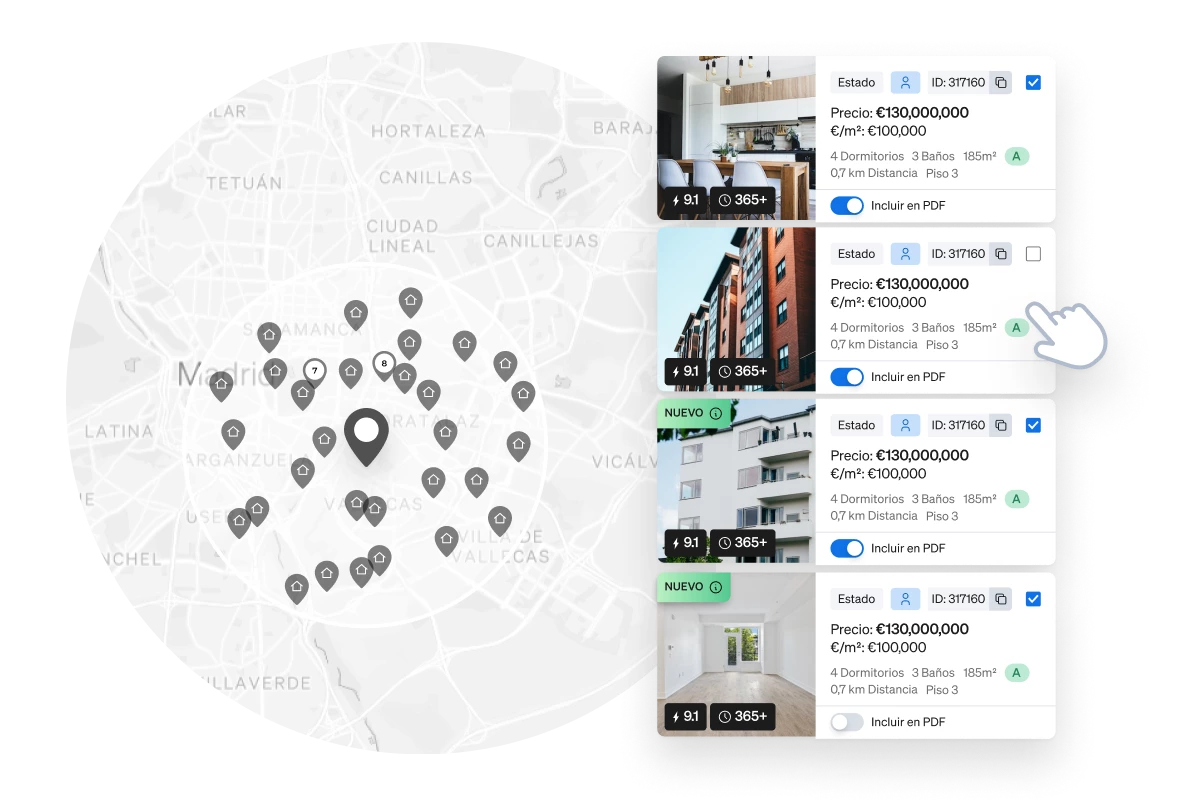 Con nuestro infome no necesitarás mirar precios en cada portal. Recopilamos los testigos de inmuebles similares