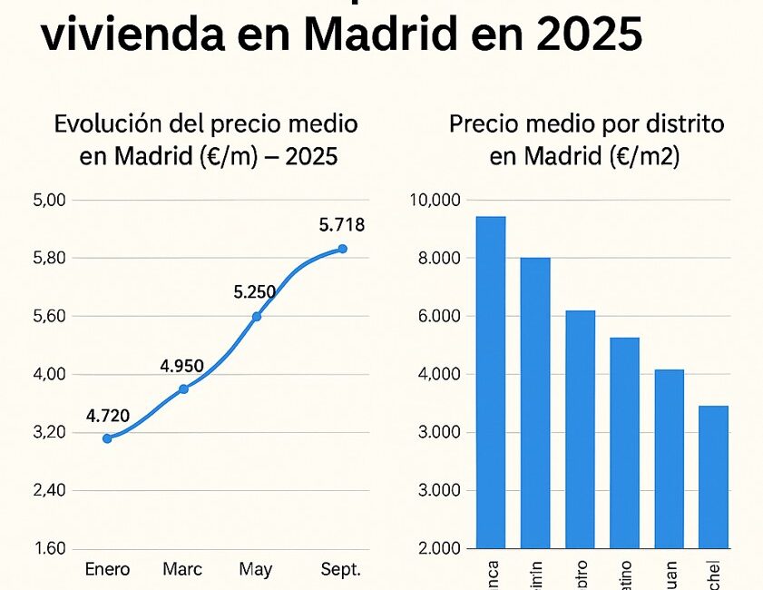 En el conjunto de la Comunidad de Madrid se registran también incrementos elevados: por ejemplo, en septiembre de 2025 el precio medio para la región fue de 4.343 €/m², con un aumento interanual del 21,7 %.